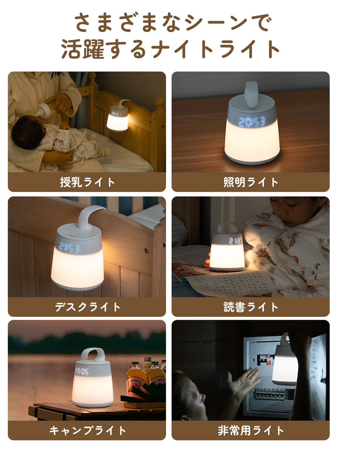 【授乳ライトの革命!3回分の授乳時間を自動記録】「3回分の授乳時間を自動記録」する業界初の設計。夜間の頻繁な授乳でも簡単ログ可能。前回との間隔を視覚的に把握できるため、時間管理が混乱しがちな育児ストレスを軽減。データは手動リセットまで保持され、スマホ依存なしで確実な記録を実現します。明るさを調節できます。暗闇の中で小さなスイッチを探すことなく、手探りでも簡単にスイッチを入れることができます。使いやすいランプで授乳用ライト・おむつ替え・夜中のトイレの照明として活躍できます。